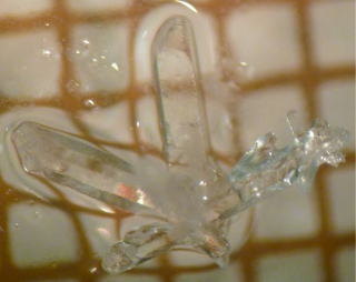 ![]() 合成単結晶イカ石(最大約3mm) |