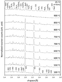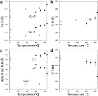 ![]() 図1. 中性子回折パターン変化 ![]() 図2. リートベルト解析 ![]() 図3. 結合距離の温度依存性 ![]() 図4. katoiteの結晶構造変化 |