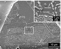 ![]() 図1. 熱水反応後のmagnetite(111)面 ![]() 図2. 熱水反応後のmagnetite(111)断面のTEM観察結果 ![]() 図3. 熱水反応後のmagnetite(100)断面のTEM観察結果 |